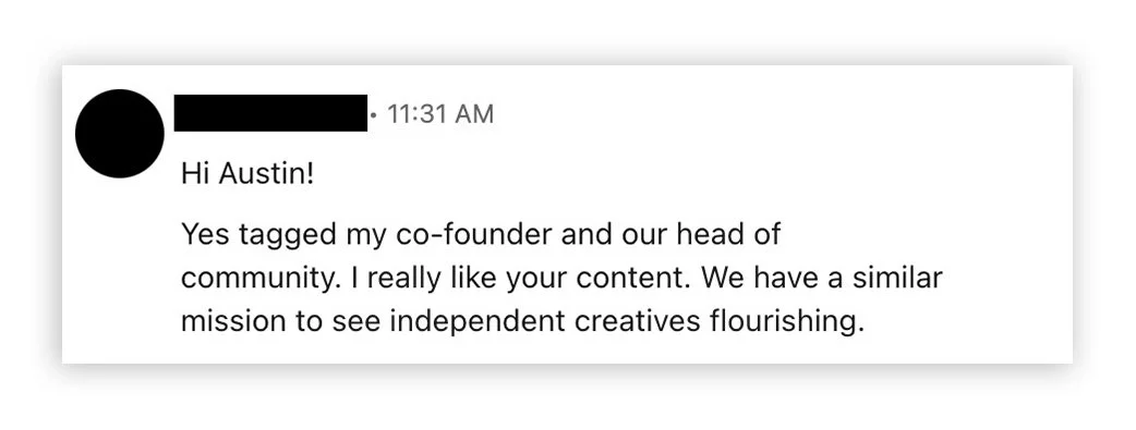 A light bulb went off and I decided to DM the guy who tagged his colleagues.